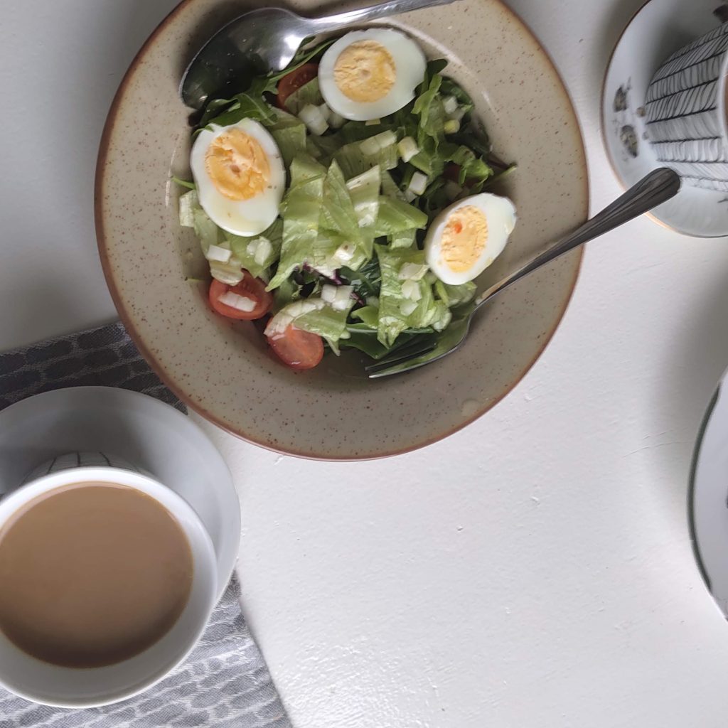 Beberapa hari kemudian, voucher itu saya pakai untuk belanja dan tukarkan dengan telur dan susu hanya dengan menambah beberapa sen saja. Saya gabungkan dengan voucher yang sebelumnya sudah saya tukarkan di K-Market yang hanya berseberangan namun memiliki harga yang kompetitif sehingga sebagai diaspora saya sangat memperhitungkan kebutuhan kami beli dari mana. Harga telur ayam tanpa kandang per 10 butir saat itu di Finlandia seharga 1.69 Euro di S-Market dan harga susu per liternya yang full fat (biasanya berwarna merah) saat itu seharga 0.75 sen jika beli di S-Market. Harga susu rendah lemak (biasanya berwarna biru tua) harga 1.15 sen di S-Market. Berikut penampakan telur dan susu yang dibeli sebelum dan setelah saya masak menjadi teman makan salad, kopi susu dan bahan pancake.
