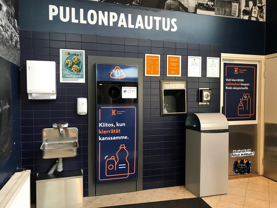 Sayangnya karena sudah mengantuk dan terdapat sedikit kejadian yang membuat kurang nyaman karena ada orang mabuk menghampiri antrian para penukar botol dan kaleng bekas, saya tidak sempat memotretnya. Namun dari situs salah satu supermarket di Finlandia, berikut penampakan mesin pengembalian botol dan kalengnya di K-market (gambar resmi situs K-market).